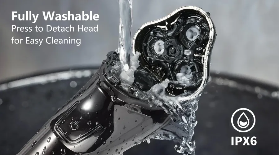 IP6X Wasserdicht – Komplett abwaschbar, ideal für die Nass- oder Trockenrasur.