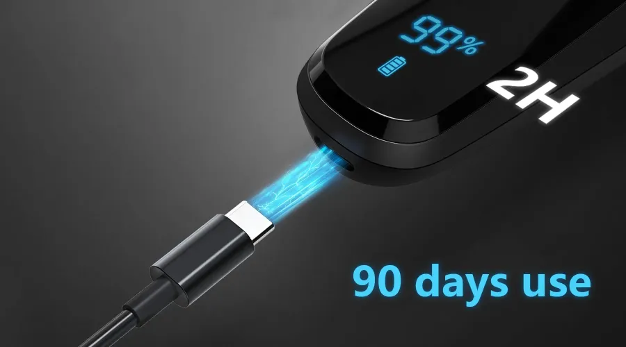 Schnellladefunktion & lange Laufzeit – 2 Stunden Laden, bis zu 3 Monate Nutzung.